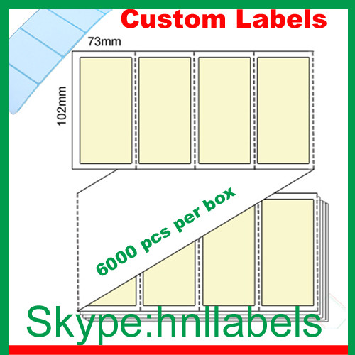 Custom Thermal Transfer Labels 102mmX73mm/1 Beige Thermal Transfer Fanfold Permanent Adhesive, Perforations, 6,000 per box
